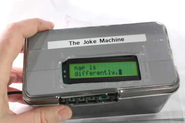 Humor: Un Comentario sobre humor, cuando mi hermana notó que posteé esta invención en Facebook, le preocupa un poco... "Esto puede ser malo!" Yo creo que era su comentario... pero menos preocupado cuando le aseguré los chistes generados por la máquina de broma no son mis chistes ;-)