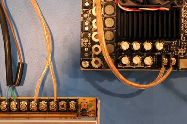 Si opta por usar varios amplificadores pequeños tales como lepai 2020a +, deberían tener todos vienen con sus propias fuentes de alimentación más pequeñas. No he hecho personalmente esto, pero te recomiendo conectar todo el poder suministros para 2020a + en una regleta y utilizar el relé con el cable de alimentación tira.