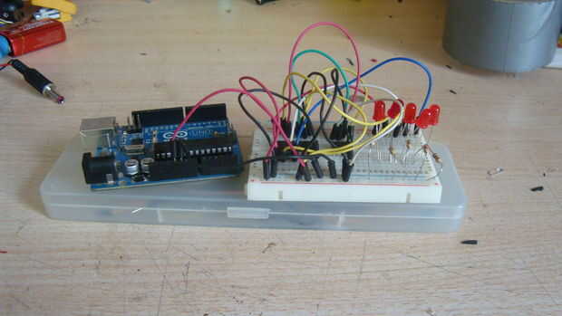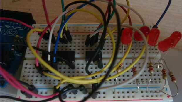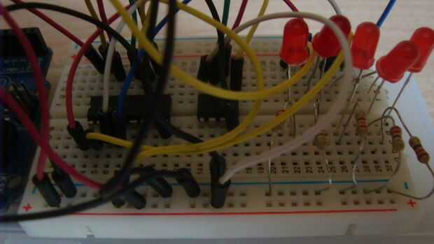 El uso del registro de desplazamiento permite controlar 5 LEDs con sólo 3 pines... que es una gran ventaja.