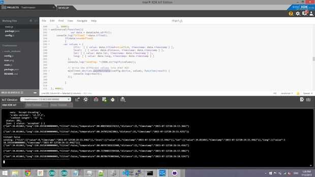 El "código de Javascript de Edison Intel" contiene el código de Intel XDT a ejecutar en el tablero de Edison de Intel.
