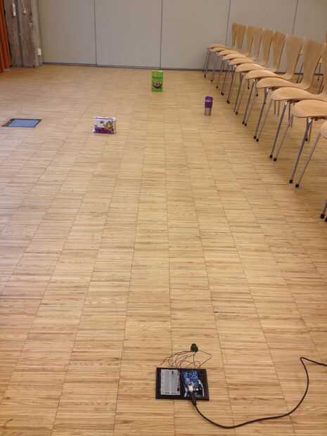 Queríamos ver cómo un gráfico saldría al leer objetos en una habitación. Para hacer la lectura habíamos a físicamente movemos el MaxSonar. Al colocar el Arduino y MaxSonar hacia el suelo logró hacer lecturas de la palabra. Para realizar este trabajo con la lectura digital que tenga que coloque por lo menos 30 cm sobre el piso. Como veis en la imagen del gráfico a veces tienen problemas para medir la distancia.
