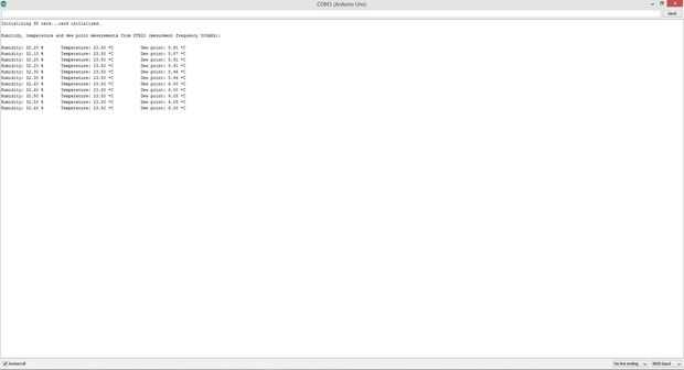 Mientras que en el entorno de trabajo de Arduino, y mientras que la junta esté conectada a la PC, el monitor serial puede abrirse (presionando ctrl + Mayús + m) y los datos revivieron directamente la placa Arduino puede ser monitoreada de forma, esto es ideal para el monitoreo de humedad y temperatura interior. También asegura que todo está en orden, usted sabrá que todo está en orden si el monitor de la serie se parece a la imagen de arriba y no mensajes de error mostrados en el monitor serial.