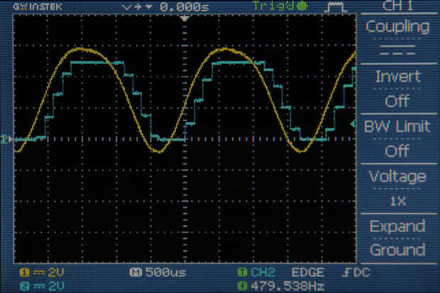 Para configurar el contador de recorte he creado unas nuevas variables. "recorte" tiene un estado de 1 cuando el Arduino detecta recorte (la señal de entrada se mide para ser 0 o 5V) y un estado de 0 cuando el Arduino no detecta recorte. En el siguiente código (para tasa de muestreo de 8kHz) también configurar una variable llamada clippingCounter. El propósito de esta variable es mantener el indicador en un momento después de que el recorte se detectó que es visible al ojo humano. En el código de 38,5 kHz (en la parte inferior de este paso) usé un delay(100) para conseguir el mismo efecto.