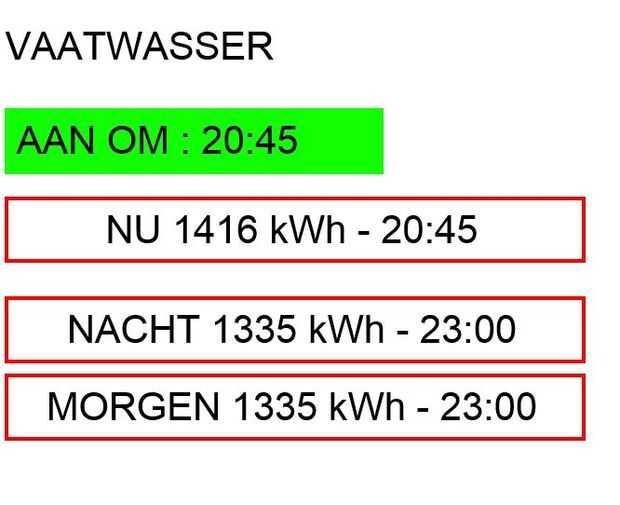 Todo lo que tienes que hacer es ir a la página web (192.168.0.156/Vaatwasser.php) y elegir el momento que desee. los platos a realizar. Una vez ha hecho, una barra verde aparecerán con el tiempo de conmutación.