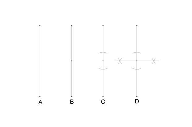 - Utilice su compás para marcar dos arcos a lo largo de la línea desde el punto de centro