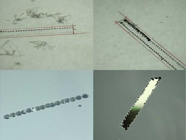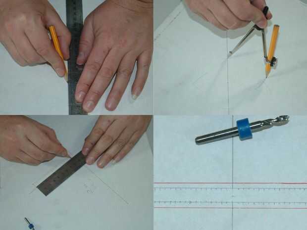 - Utilice una regla para dibujar una línea entre sus dos puntos de referencia (orificios de 0,6 mm)