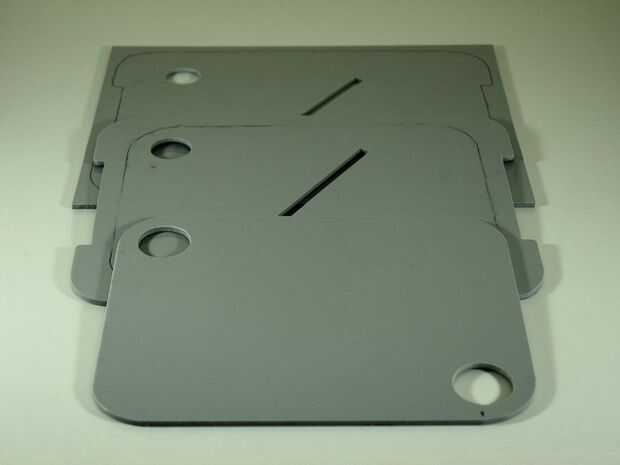 Vuelta sobre el PVC hojas así que ahora usted puede marcar hacia fuera de la ranura en la parte superior del soporte del motor. La ranura se corta sólo a través de las dos hojas de PVC superior. Sin embargo debe marcarlo hacia fuera antes de que corte los orificios del tubo a través de todas las tres hojas o perderás tus puntos de referencia.