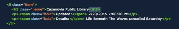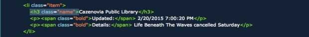 -'¿Qué son las tapas?' puede pedir. Mira las fotos primeras y segunda. La tapa principal para mis datos se destaca en la primera foto. Todos los otros elementos de esta lista de cierres tiene esta tapa principal, y es visto en ninguna parte otro en la página. La tapa final en este caso es el < / h3 > como se ve en la segunda foto de la etiqueta. Esto no es único en la página web, pero si la combinación de la primera y la segunda tapa es única no debe obtener los datos no deseados.