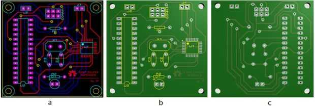 - Las pistas disponibles (pecado soldadura y pecado soldar el circuito) para montar o sobreponer el microcontrolador ATMEGA328P en encapsulado SMD para cargarle el gestor de arranque