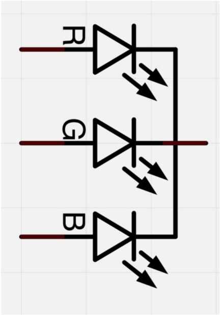 El RGB (rojo-verde-azul) LED es un componente muy versátil. Como se puede ver en las fotos, hay cuatro 'patas' a lo LED que de izquierda a derecha son: rojo, ánodo de cátodo común, verde y azul.