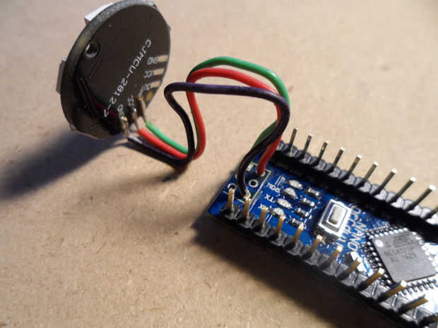 Soldar los cables a V5, D12 (aka MISO) y GND en el Nano respectivamente.