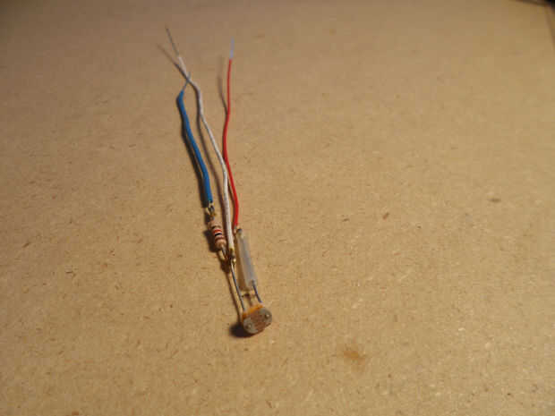 La soldadura a la LDR foto-resistente y la resistencia de 1K.