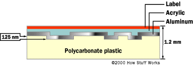 A compact disc is made from a 1.2 mm thick disc of almost pure polycarbonateplastic and weighs approximately 16 grams. A thin layer of aluminium (or, morerarely, gold, used for its longevity, such as in some limited-edition audiophile CDs) is applied to the surface to make it reflective, and is protected by a filmof lacquer. The lacquer is normally printed directly and not with an adhesivelabel. Common printing methods for compact discs are screen-printing and offset printing.