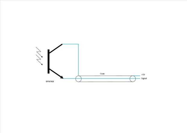 - Utilizar cable coaxial para conectar al fototransistor como en el diagrama anterior. Reduce la pérdida de señal y ruido.