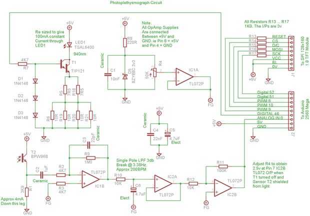 En el diseño del circuito para el detector de fui a través de muchas iteraciones y había probado muchos tipos de detectores. De fotodiodos en modo fotovoltaico y transconductancia. Métodos de detección reflexivos y transmisivas. Con diferentes fuentes de iluminación como rojo 650nm, 535nm verde IR 940nm.