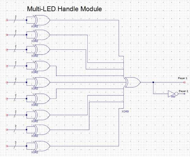Por lo tanto, para este diseño, hemos decidido utilizar las puertas lógicas XOR para realizar la función de conmutación entre cada jugadores. La idea fundamental de XOR es que si hay un número impar de 1 '1' la salida y un '0' la salida si hay un número par de 1. Vamos a usar esta idea para determinar qué jugador gire.