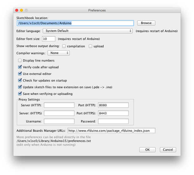 En el momento de escribir este artículo se han probado las siguientes instrucciones en la última versión del IDE Arduino (1.6.5). Con su RFduino desconectado de la computadora donde se va a utilizar el IDE de Arduino para programar el RFduino.