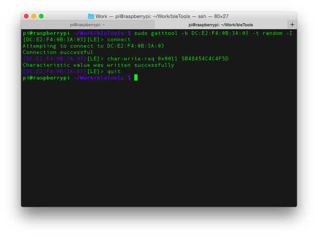 Con el Raspberry Pi y RFduino listo para ir, podemos seguir adelante y abrir una Ventana de Terminal en la Pi y asegúrese de que el RFduino es.