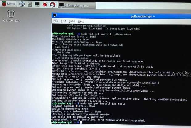 Ahora para instalar python-smbus y ejecutar los siguientes comandos tienes tienen la IP conectada a Internet, básicamente ejecutar el Pi sin cabeza usando un dongle Wi-Fi.