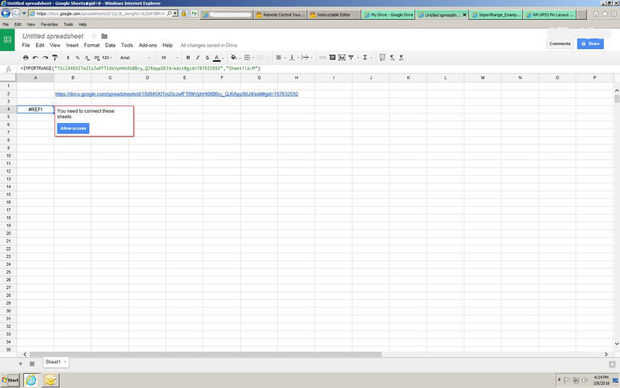Para vincular inicialmente una Nueva hoja a la hoja principal, coloque este comando importrange en una celda. Puse este comando en la celda A5.