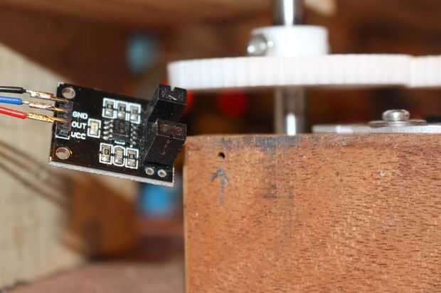 Para permitir que este lapso de tiempo trabajar bien y constantemente necesita para asegurarse de que el giradiscos comienza siempre en el mismo punto. para ello he usado un detector de ranura. Este dispositivo tiene un diodo IR de un lado y un detector en el otro lado, cuando algo entra en la ranura y oscurece el espacio tienes un cambio de salida. Esto se utilizará como un indicador del parque. Al final de cada secuencia de la imagen dirán el motor para dar un paso atrás y luego cada vez que la ranura se comprobará. Cuando la ranura se interrumpe entonces el motor avanzará a la posición inicial.