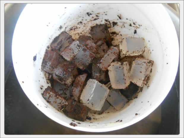 Cortar el jabón base en cubos pequeños (70-80 g).