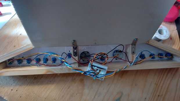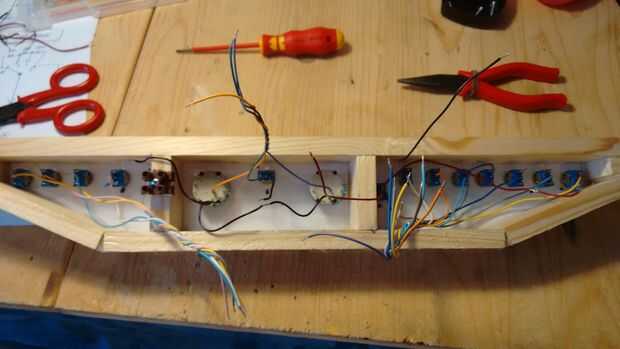 Dato internamente il pannello è diviso en tre sezioni delimitar dai due montanti, cablare gli interruttori ed fili en tre gruppi hecha, por facilitare anche il estribos. Dei de piedino de la ONU "ad saldato Ogni filo è quindi" debida Rúbrica, connessi un loro volta en parallelo ai piedini dell'Arduino Nano, secondo lo esquema indicato nel foglio Excel.
