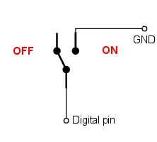 Por semplificare il cablaggio, tutti gli ingressi digitali di Arduino li impostiamo con il pullup interno attivo: questo significa leggeremo sempre valore alto (+ 5V) se il pin no è connesso un nulla, e bajo (0V o GND) quando attiviamo lo cambiar pin de il portando una massa. Tutti gli cambiar una debida posizioni sono quindi connessi una massa da un lato, mentre il centrale va direttamente al pin digital. En este modo de ángulo "alto (o"1") de leggeremo mentre en ángulo"A"il centrale sarà connesso una massa quindi leggeremo bajo (o"0") OFF".