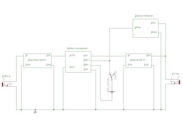 5V entonces va a un módulo de gestión de la batería. Estos están disponibles por $1 en ebay y hay varias versiones - elegir uno que tiene 4 teclas del lado derecho ya que hay algunos que sólo tienen 2 cojines. Las teclas separadas para la batería significa que la batería se puede desconectar el módulo cuando es bajo o sobre voltaje.