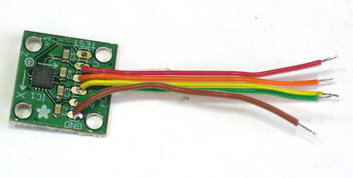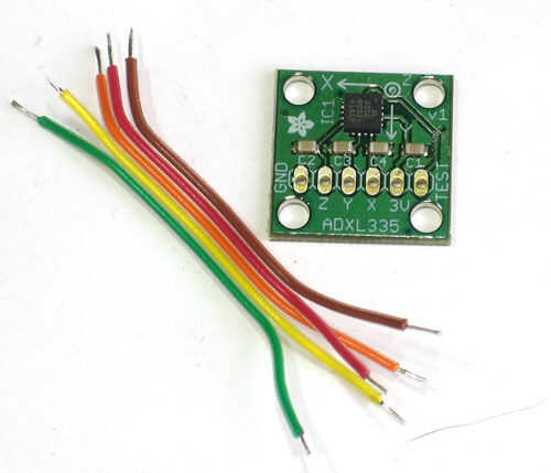 Ahora vamos a añadir en el acelerómetro para crear un ratón activado por inclinación. Va a hacer casi cualquier acelerómetro, pero la más fácil es una salida analógica de uno. El ADXL335 funcionará muy bien. Primero va el chip de potencia proporcionando 3.3V (no 5.0V) y tierra de la Teensy, luego conectar las tres salidas analógicas (X, Y y Z) para tres entradas analógicas. Finalmente, agregaremos código Mouse'ing el dibujo para que los eventos de movimiento del Mouse son enviados cuando el controlador está inclinado.