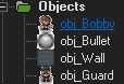 Lo primero es lo primero. Necesitamos un jugador y enemigos. Programa al jugador por movimiento y comandos disparos (que supongo que sabes cómo hacerlo). Luego programa el enemigo para efectos de colisión, tales como qué pasa si golpeo el jugador, o qué pasa si una bala me pega etc. Como se puede ver, he programado jugador y guarda objetos.