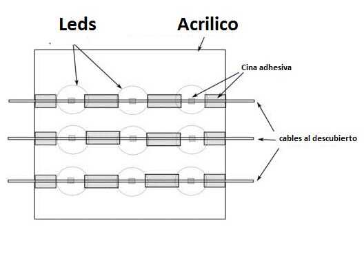 El Touchpad va sobra la pieza de los LEDs, en la imagen es la pieza transparente, esta debe ser transparente para pase de pasada de la luz.