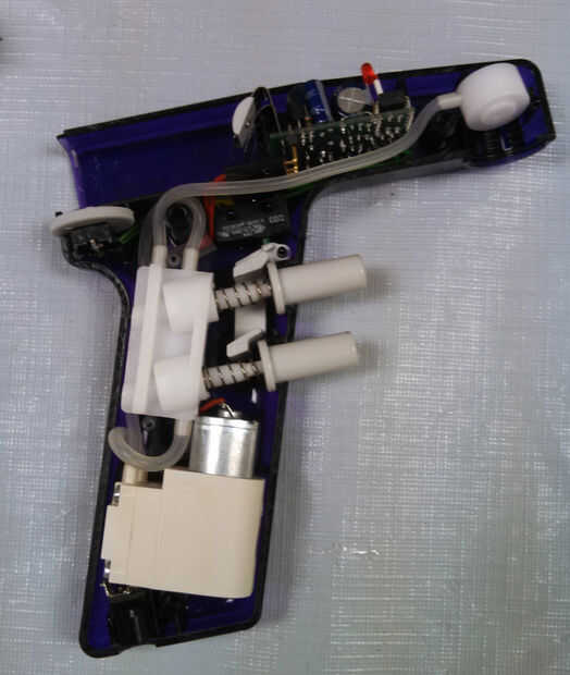 1 intento dest : al principio, pensé que la pipeta dispensador aspira/expulsa el medio dentro de la pipeta al cambiar la bomba de dirección dentro del dispensador de la pipeta en movimiento. Si he añadido un circuito PWM en el circuito de control de bomba para controlar la bomba de dirección en movimiento (por ejemplo, cuando la señal PWM es alta, la bomba gira en una dirección, y cuando la señal PWM es baja, la bomba gira a otra dirección), podría resolver el problema. Por desgracia, el dispensador de la pipeta no funciona de esa manera. Después de abrir el dosificador pipeta, encontré que la bomba en el depósito de la pipeta siempre se mueve en una dirección, y la aspiración/expulsión se hace pulsando mecánicamente las válvulas para cambiar la dirección del flujo de aire dentro del tubo. Tengo que diseñar algo para presionar el botón arriba/abajo mecánicamente.