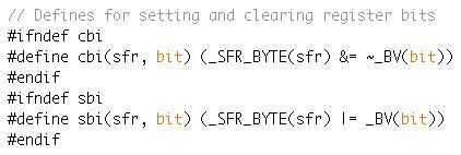 #define cbi (sfr, bits) (_SFR_BYTE(sfr) & = ~_BV(bit))