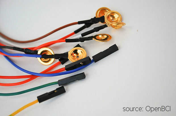 - Señales cerebrales son detectadas por el electrodo de EEG en la zona de la frente, en el interior del sombrero. El tutorial muestra cómo hacer su propio electrodo de EEG seco. Sin embargo, si lo prefiere, puede comprar los electrodos.