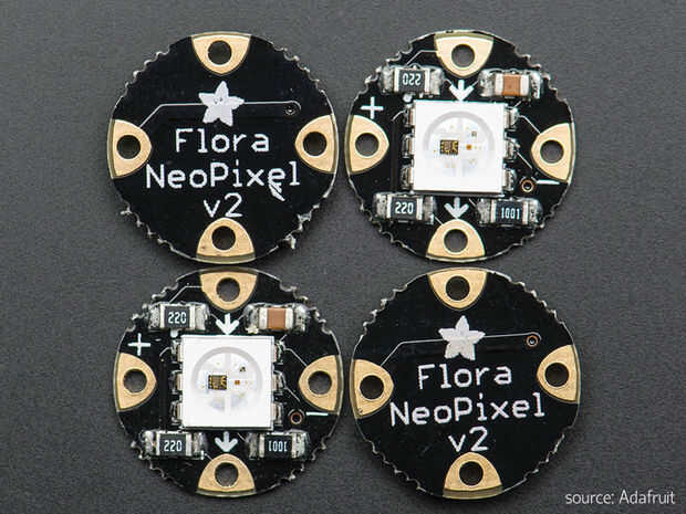 Desde illumino está programada para convertir las señales del cerebro en tiempo real en luz de colores, 4 LEDs RGB están conectados con el Arduino. Yo uso Flora Neopixel LEDs de Adafruit, pero cualquier pequeño LED RGB hará el truco.