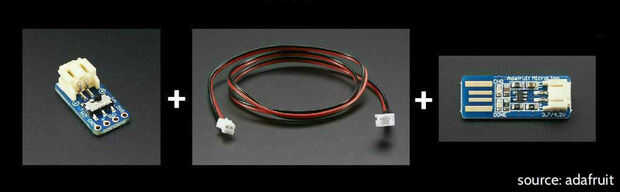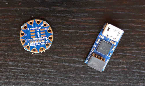 - un microcontrolador Arduino, para el custom firmware que interpreta la señal del cerebro y lo convierte en luz. Un adaptador USB está conectado a Arduino, para permitir un fácil acceso al software de una computadora. Usé el Tinycircuits mini adaptador USB FTDI y TinyLily Arduino. Me gusta la TinyLily porque su minúsculo tamaño es muy práctico. Como alternativa, puede utilizar un Arduino que tiene una ranura USB a bordo, como el LilyPad Arduino (la LilyPad328 y la ONU son compatibles con el software). Si va a implementar bluetooth, you´ll de you´re necesita un Arduino con más RAM.