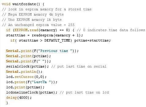 Valores de tiempo se pueden almacenar en la memoria eeprom, que se conserva después de reiniciar.
