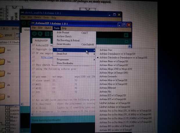 Paso 2: Cargar el programa ArduionISP y empezar a burnning bootloader