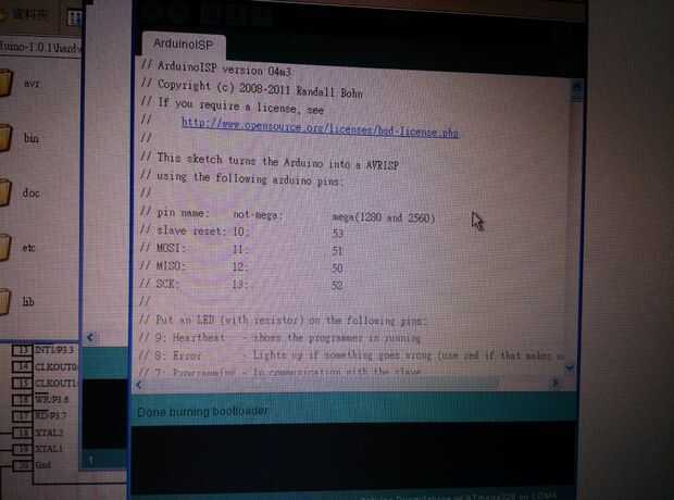 6. Haga clic en Burn Bootloader. En un minuto que se debe ver "Hecho ardiente bootloader"