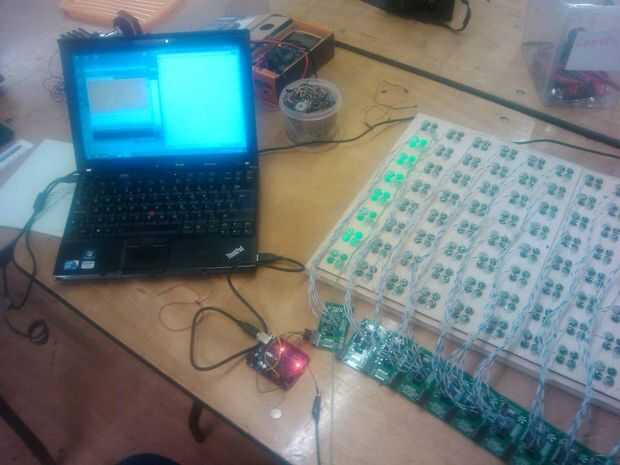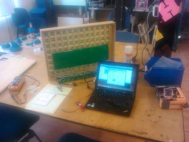 Daniel (otro miembro del hackspace) escribió una librería para hacer scolling texto en una matriz. Sus ejemplos están disponibles en github aquí: https://github.com/daniel1111/MatrixText
