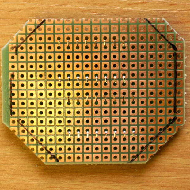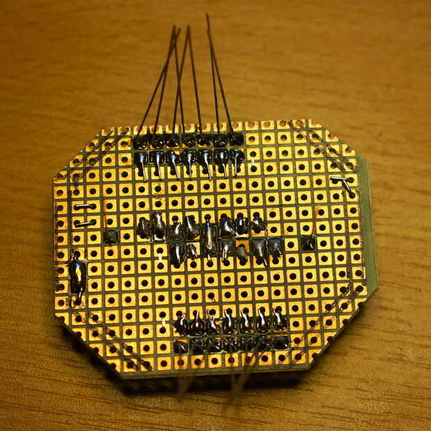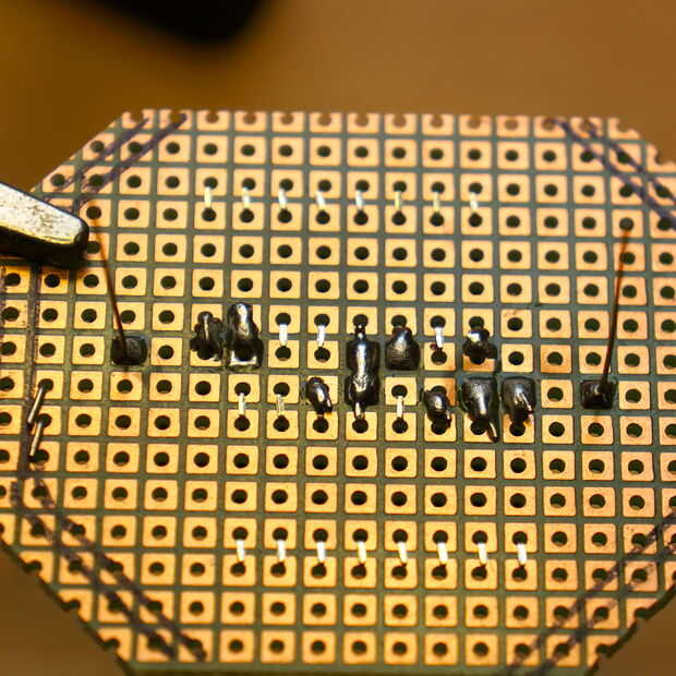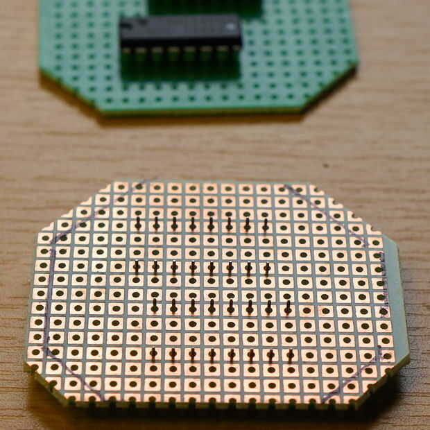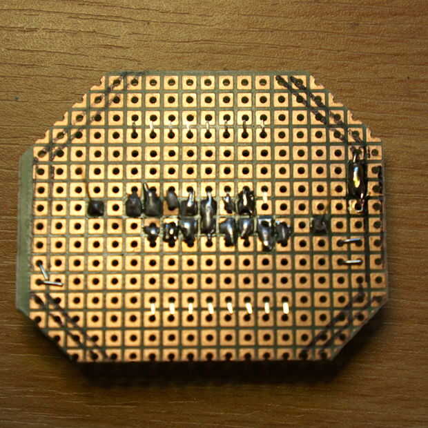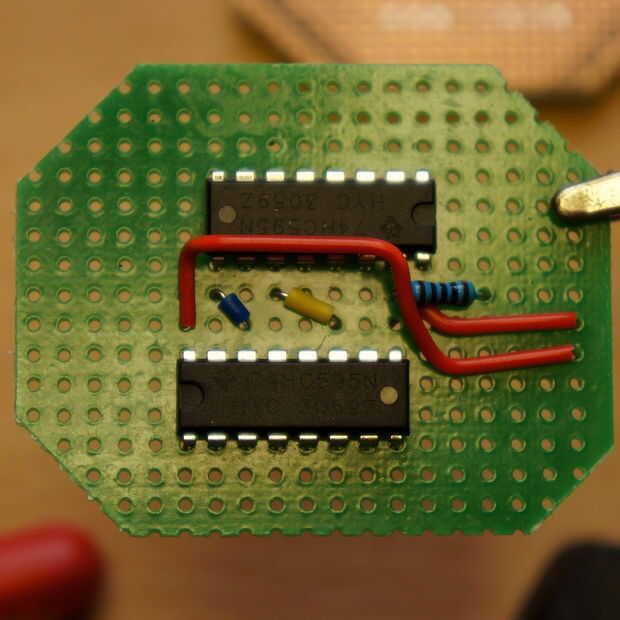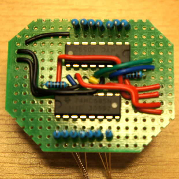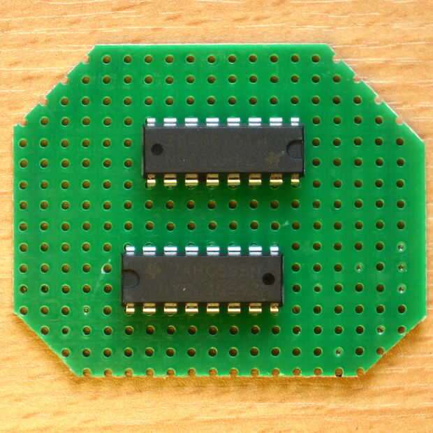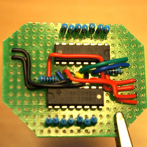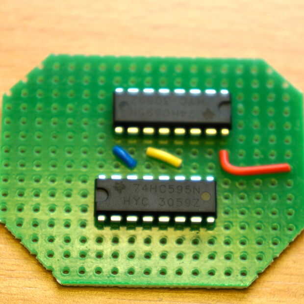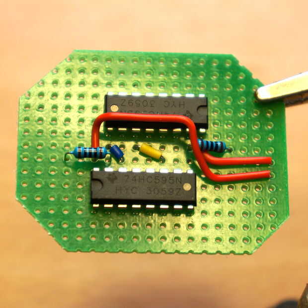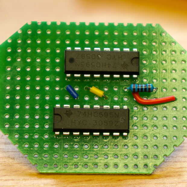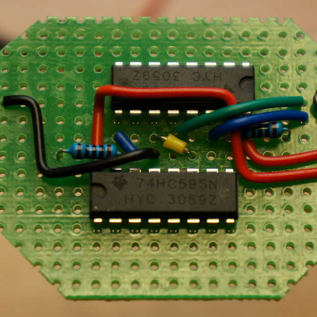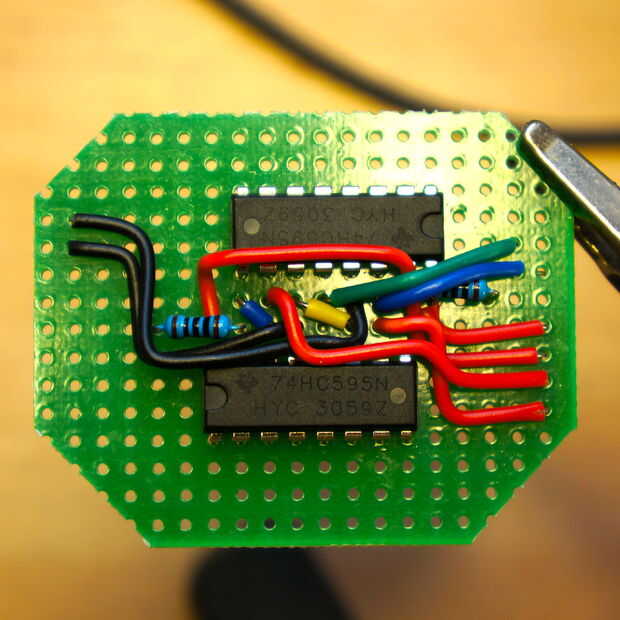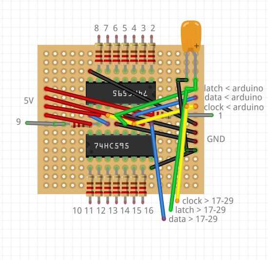 - Poner un cambio de registro en el perfboard (utilicé 74HC595) mantener 2 o 3 orificios en la parte inferior y 4 o 5 a la izquierda