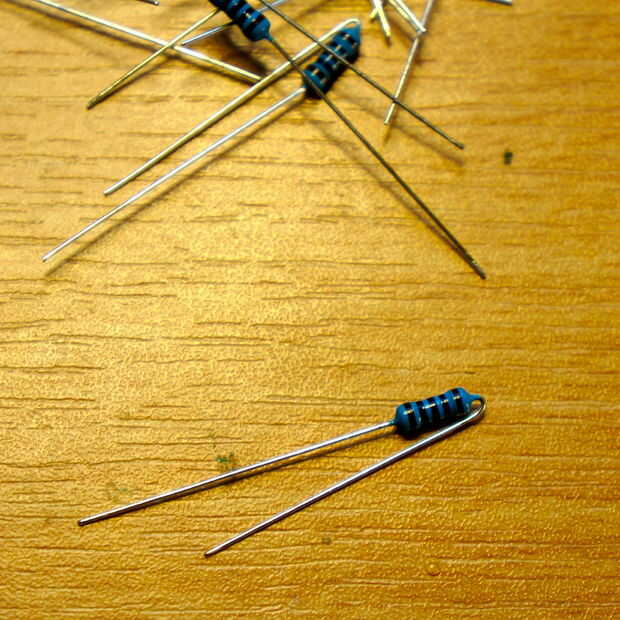 - Esto las piezas en el lugar de la soldadura (Asegúrese de no hacer un corto entre las resistencias y los cables)