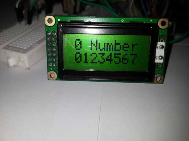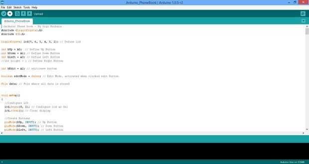 Vuelva a conectar el arduino al ordenador, índice se establece en 0, haz clic en el botón Editar, cuando está en modo Editar, presione botón Subir/bajar y elige la letra ' n ', luego haz clic en el botón izquierdo, luego elegir la letra 'u', entonces carta estoy ', luego de la letra 'b', luego 'e', luego 'r', luego pulsa el botón izquierdo hasta que el cursor se desplazará hacia abajo: