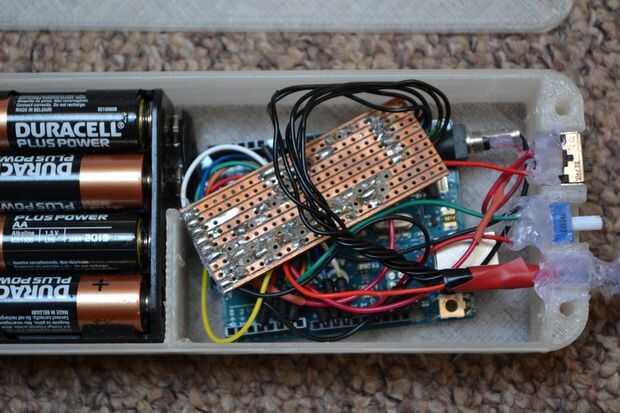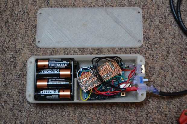 Una vez que ha conectado correctamente todos los componentes se muestra en el diagrama del circuito, se puede montar dentro de la caja impresa 3D utilizando los elementos caso y CaseLid y algunos tornillos y tuercas M3.