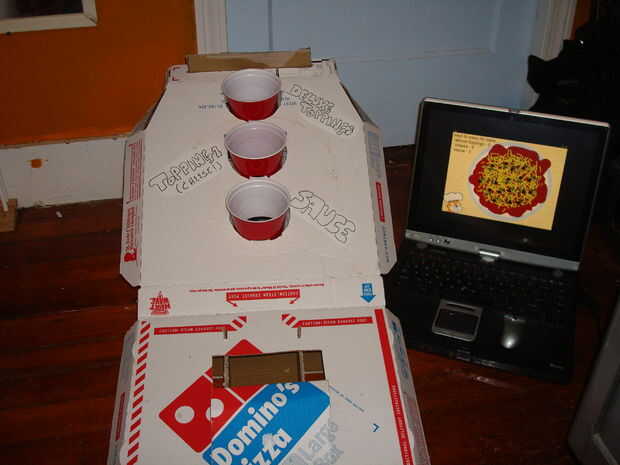 Hay muchos programas de ordenador que le permiten activar eventos cuando una persona presiona una tecla especial en un teclado. He utilizado el entorno de programación Scratch. Está disponible en http://scratch.mit.edu como una descarga gratuita. (Parte de mi papel en el equipo de diseño de Scratch es hacer nuevas formas para personas a interfaz con el rasguño de una manera más física - ampliando teclado es uno de muchas maneras).