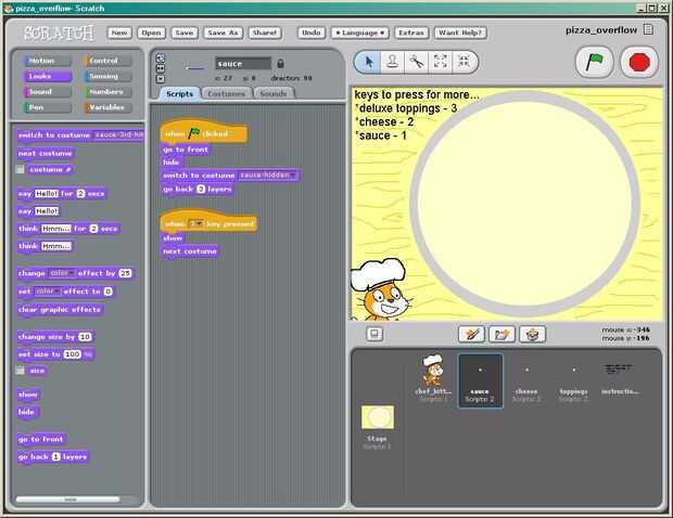 Puede descargar el proyecto de pizza_overflow en el sitio web de Scratch: http://scratch.mit.edu/projects/millner/350143.