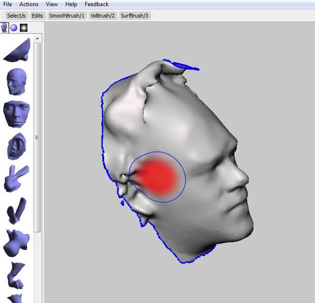 También puede añadir o restar material. No dude en darse una rinoplastia. La parte superior de mi cabeza fue desordenada en mi modelo 3D, no era un problema puesto que todo lo que necesitaba era la cara. Yo simplemente se niveló el modelo en esa región. El resto se consigue cortado.