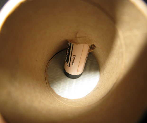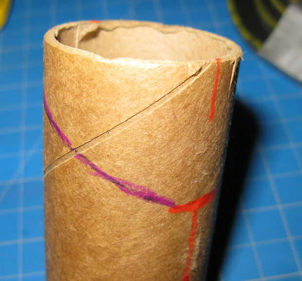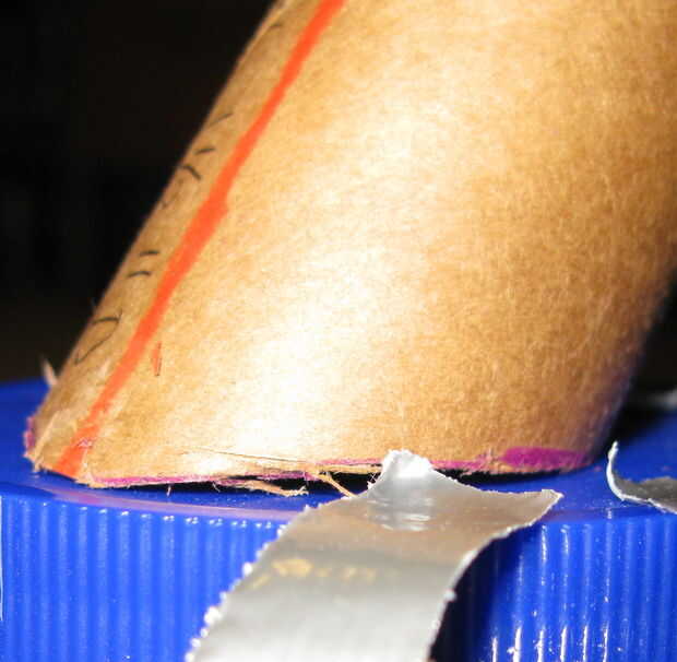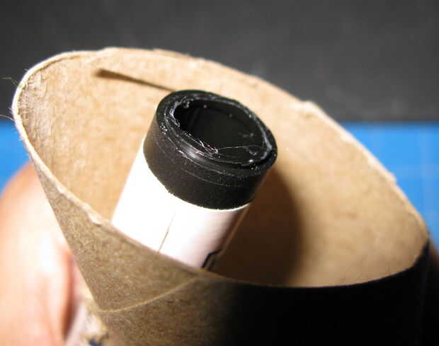 - Empuje el tubo hueco o un lápiz a través del orificio. Ángulo así uno de los extremos es incluso con la abertura corte del tubo. Usando cinta adhesiva, sello firmemente la abertura superior. Varias tiras deben cubrir la parte superior según el diámetro del tubo. Empuje el tubo hueco o un lápiz contra el interior de la cinta se pega y se puede ver en el lado exterior de la cinta. Céntrelo.