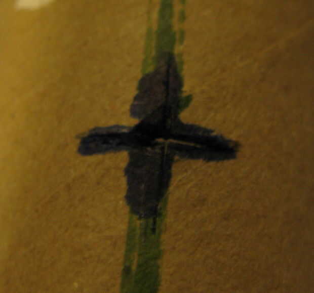 - Hacer un agujero centrado en la Cruz. El agujero debe ser lo suficientemente grande como para caber lo que usas para #8 (lápiz o tubo hueco) en la lista fuente.